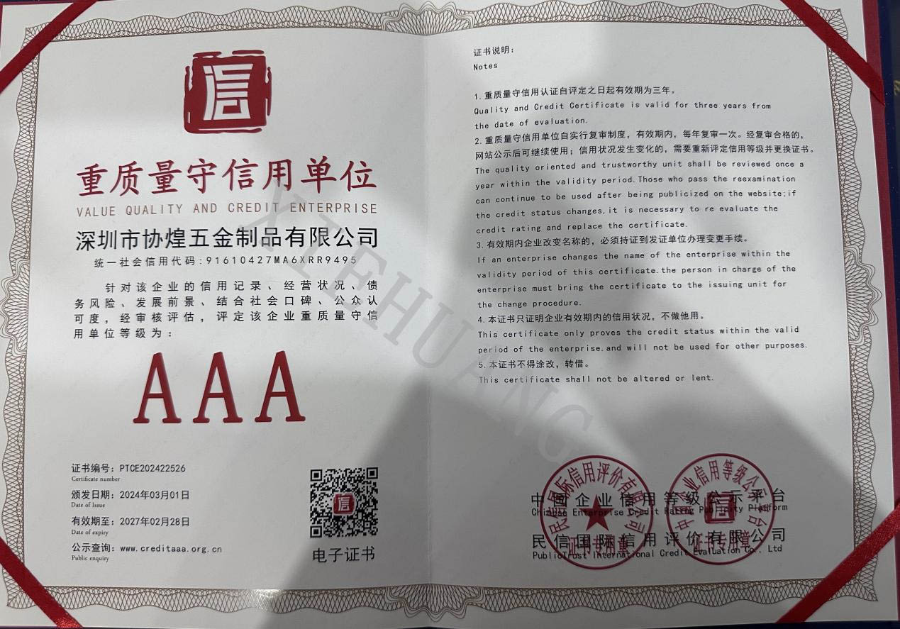 โรงงานฮาร์ดแวร์ Xiehuang ของเราได้รับการจัดอันดับให้เป็นองค์กรที่มุ่งเน้นคุณภาพและน่าเชื่อถือทุกปี เรารู้สึกขอบคุณมากสำหรับการรับรู้ของลูกค้าของเรา ในเวลาเดียวกันเราหวังว่าจะได้ร่วมมือกับคุณและหวังว่าจะได้ติดต่อเราได้ตลอดเวลา!
